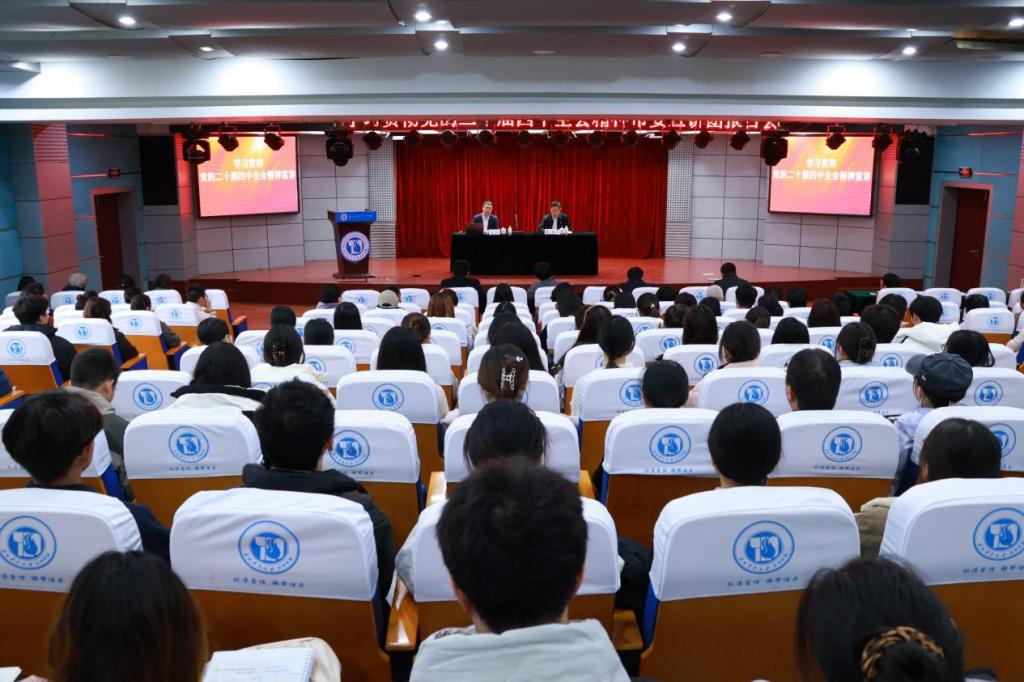 根据苏州市委统一部署,12月10日下午,我院学习贯彻党的二十届四中全会精神市委宣讲团报告会在图书馆报告厅举行。苏州市委宣讲团成员、苏州大学人文社科处处长陈一教授作宣讲报告,学院领导、院属各职能部门负责人、各级党组织负责人、师生党员共150余人参加了此次报告会,报告会由党委书记夏阳主持。
