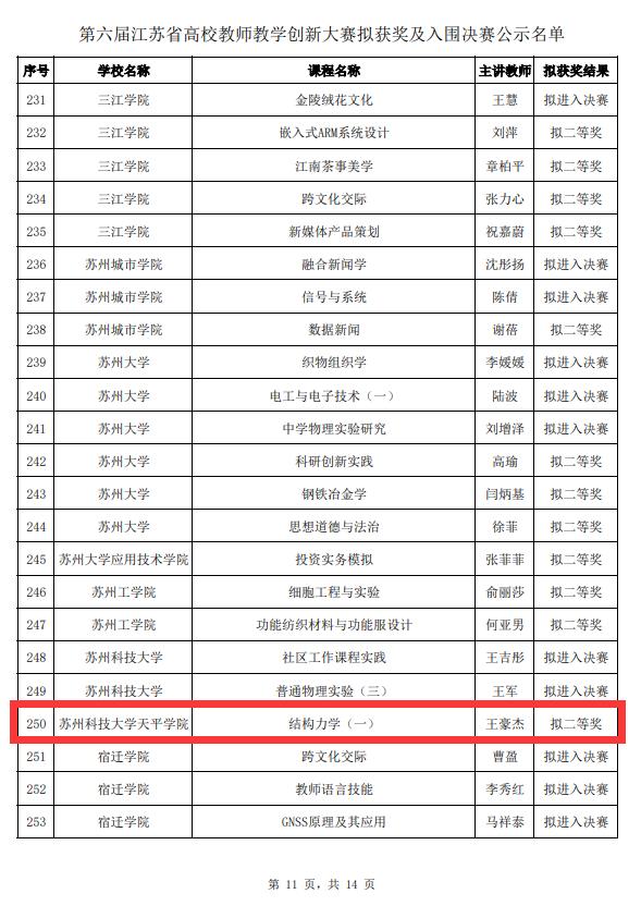 近日,第六届江苏省高校教师教学创新大赛评选结果公布。经过激烈角逐与层层遴选,我院王豪杰老师凭借扎实深厚的教学功底、独具特色的教学风格与深入浅出的授课艺术,以《结构力学(一)》课程在新工科组别斩获二等奖,实现了我院在该项赛事中的突破。