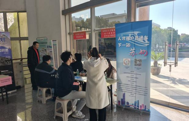 招聘会现场气氛热烈,毕业生与用人单位积极沟通交流。苏州市人才服务中心工作人员为毕业生提供落户政策和就业见习政策咨询,吴中区人社局工作人员为毕业生提供创业政策咨询。