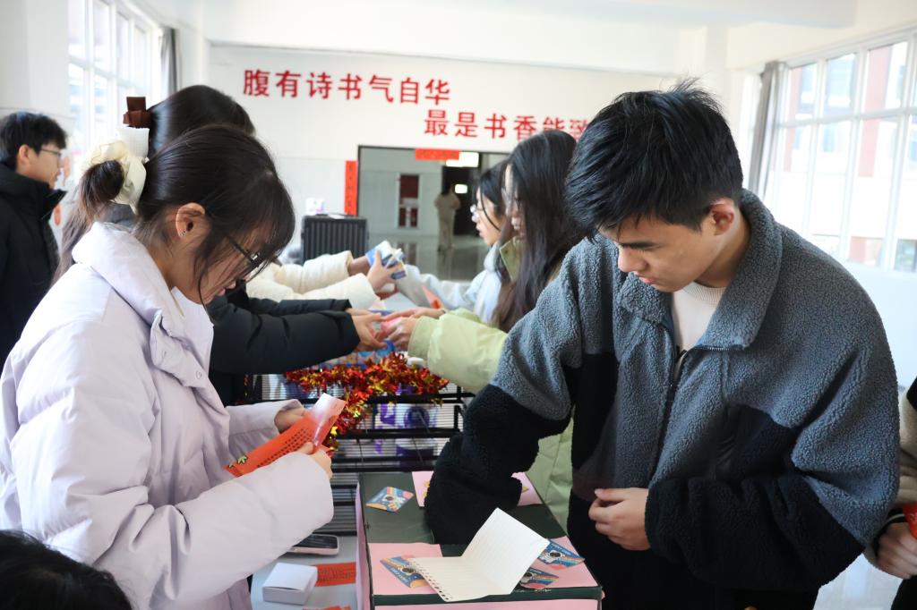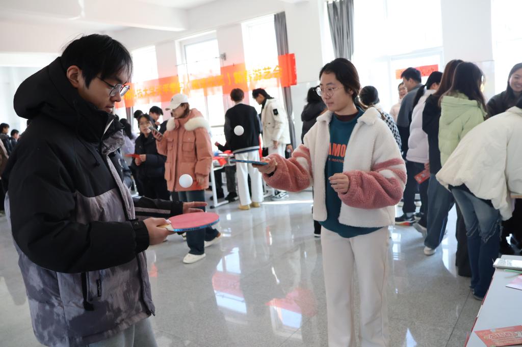 新春游艺会是我院延续多年的传统活动,本届活动设置了“猜灯谜”“挥毫泼墨”“创意DIY”“乒乓颠球挑战”等八项年味浓郁、趣味盎然的游艺项目,并保留深受欢迎的写对联环节。现场既有轻松愉快的小游戏,也不乏具有一定挑战性的互动项目,吸引了众多师生踊跃参与。同学们在手工制作、乒乓颠球等环节中全神贯注、稳扎稳打,展现出笃行不怠的认真姿态;老师们则耐心排队,挥毫书写春联与“福”字,将一句句“马到成功”“骏业宏开”的美好祝愿融入笔墨之中,寄语同学们在紧张的学习中适当放松,科学安排时间,以更加昂扬饱满的状态迎接即将到来的期末考试。