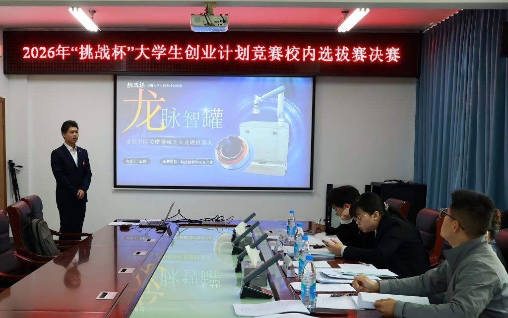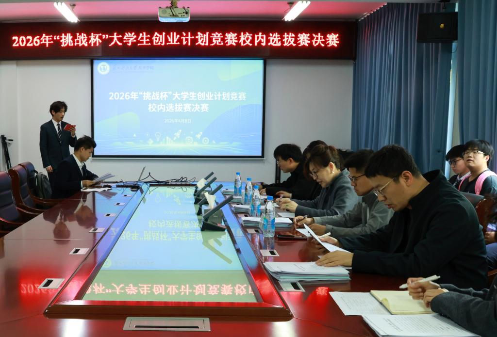 为引导和激励青年学子弘扬时代精神、把握时代脉搏,将所学知识与经济社会发展紧密结合,培养和提高创新、创意、创造、创业的意识和能力,4月8日,我院2026年“挑战杯”大学生创业计划竞赛校内选拔赛决赛在第二会议室举行。