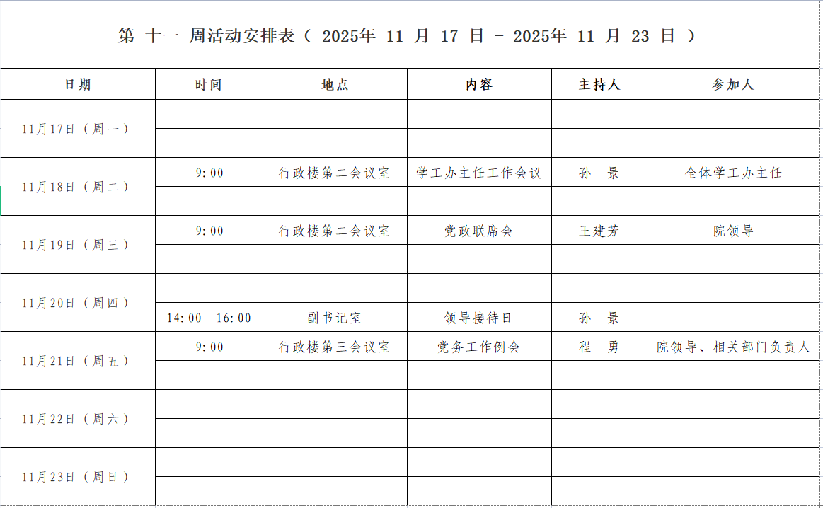 第 十一 周活动安排表( 2025年 11 月 17日 - 2025年 11 月 23 日 )