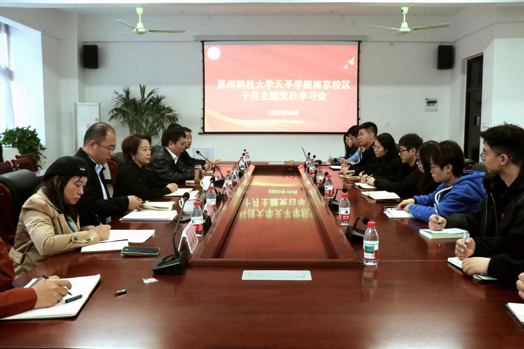 为深入学习贯彻习近平新时代中国特色社会主义思想,进一步强化党员理想信念教育、切实推动理论学习走深走实,10月29日上午,南京校区党总支在第一会议室开展十月主题党日学习会。校区党总支书记、管委会主任陈焕娣,党总支副书记、管委会副主任董巍峰出席会议,职能部门全体党员参加会议。会议由党总支副书记、管委会副主任董巍峰主持。