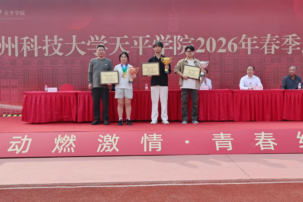 当天下午,所有比赛项目都圆满完成,闭幕式如期举行。总裁判长徐彪上台宣布比赛成绩,智能制造学院以260分的优异成绩获得团体积分冠军,环境科学与工程学院、管理学院分别以213分和140.5分获得亚军、季军的好成绩