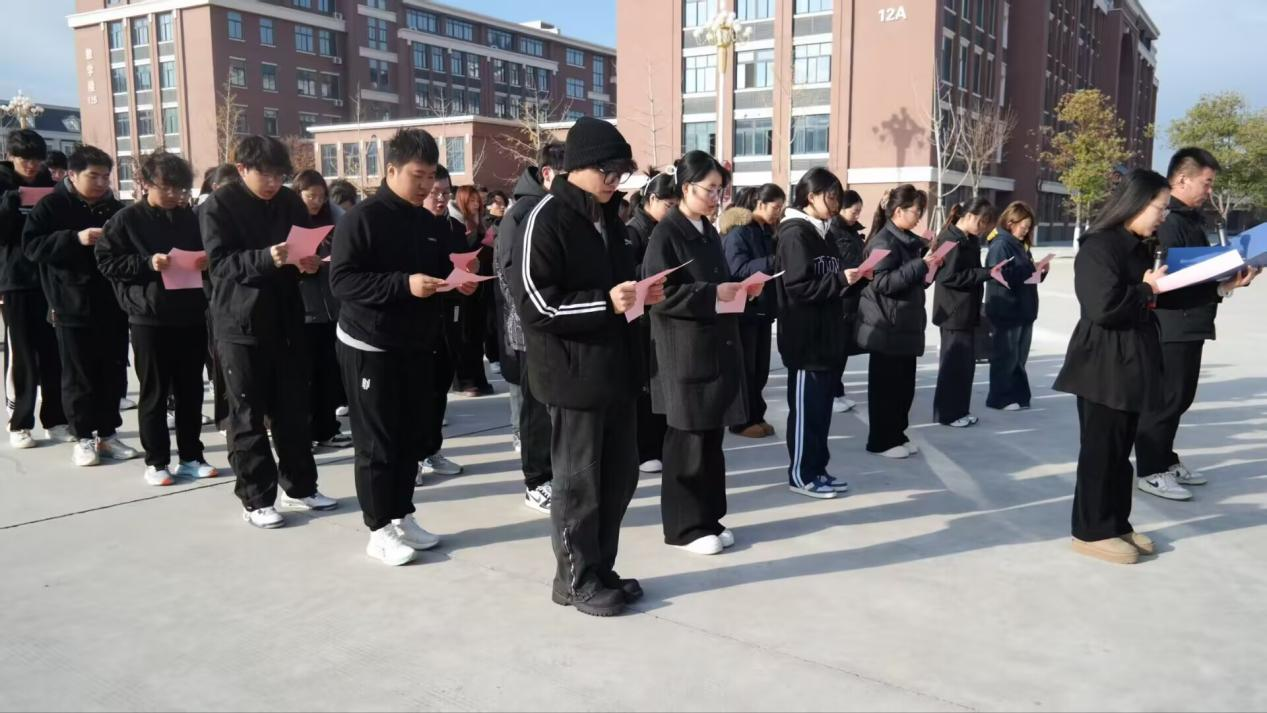 在团委陈箫箫、孙恒老师的领读下,全场同学齐声诵读宪法部分条款,朗朗诵读声铿锵有力,让尊崇宪法、学习宪法、遵守宪法、维护宪法、运用宪法的意识深深植根于每一位参与者心中,活动现场庄重而严肃。