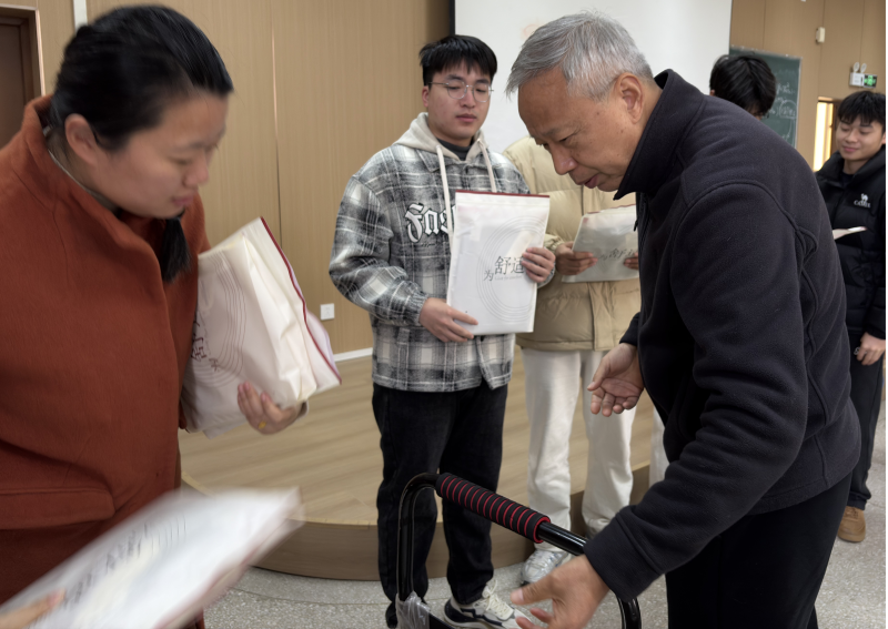 活动现场秩序井然,徐乐中副院长亲自为同学们发放冬衣。在发放过程中,他与同学们亲切交流,详细询问大家的学习生活情况和御寒需求,叮嘱同学们注意保暖、安心学习,鼓励大家以饱满的精神状态投入到冬日的学习和生活中。接过崭新冬衣的同学们脸上洋溢着喜悦的笑容,纷纷表示感受到了学院的深切关怀,内心倍感温暖。